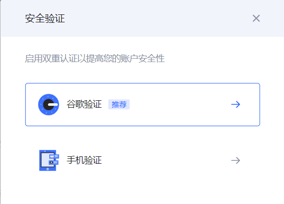 二次验证分为手机验证和谷歌验证;